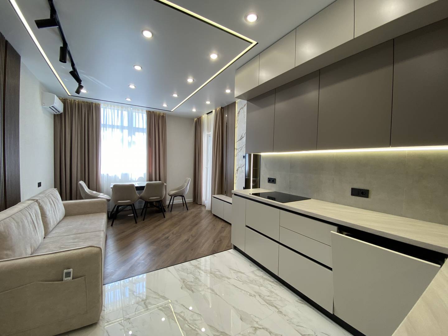 У продажу гарна стильна квартира в Одесі. Дизайнерський ремонт, повна комплектація, нове на гарантії. Три окремі кімнати, кухня вітальня, вбиральня. Будинок бізнес-класу в безпосередній близькості від центру, б. фонтану та Аркадії. Своя власна розвинена інфраструктура. Велика прибудинкова територія. Можливий продаж по держ. програм. Телефонуйте! Оперативний показ.